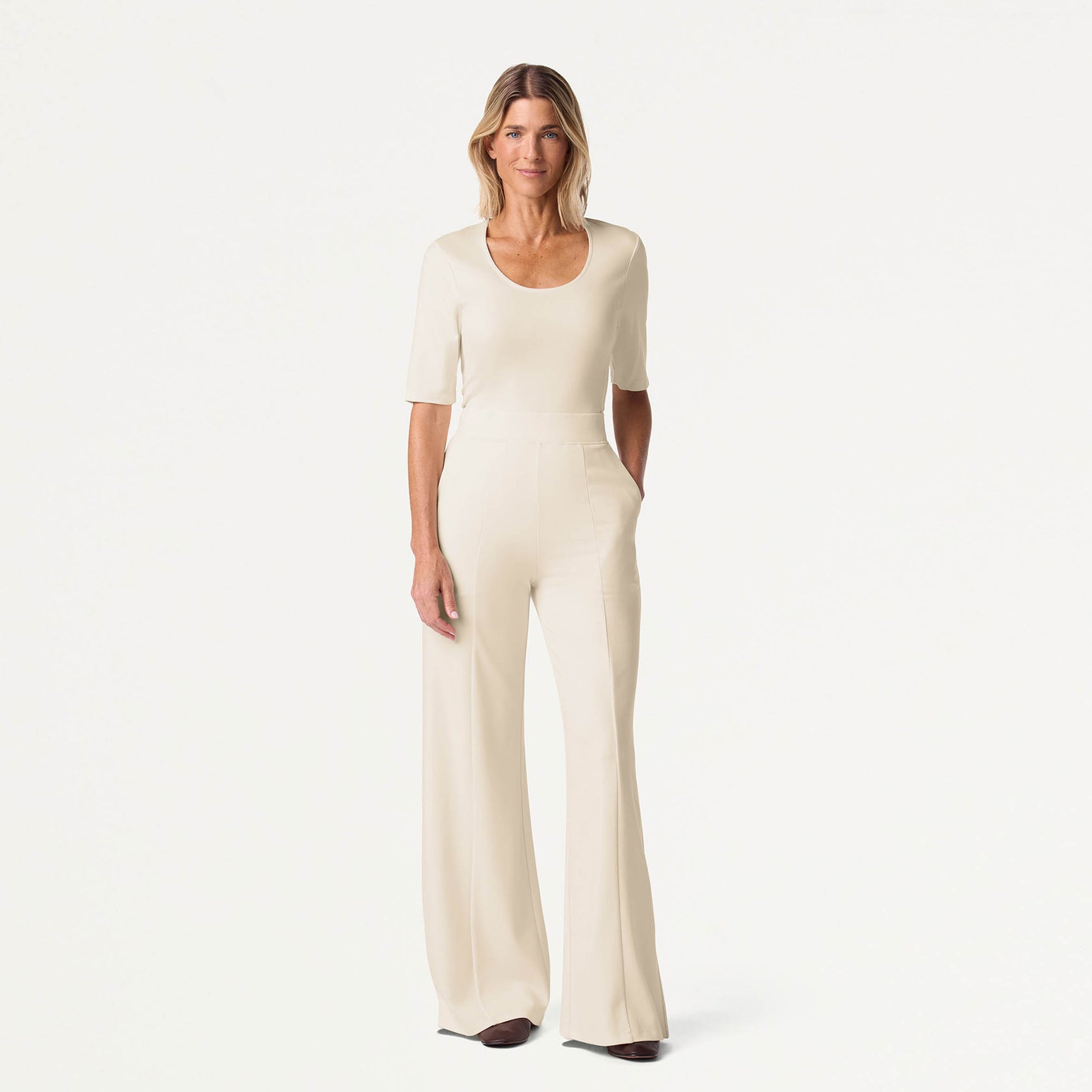 Go wide in this comfort-first pant, featuring an on-trend silhouette that flows seamlessly from on the job to off the clock. With our beyond-soft fabric and a high rise, it fits and feels exactly how you want.