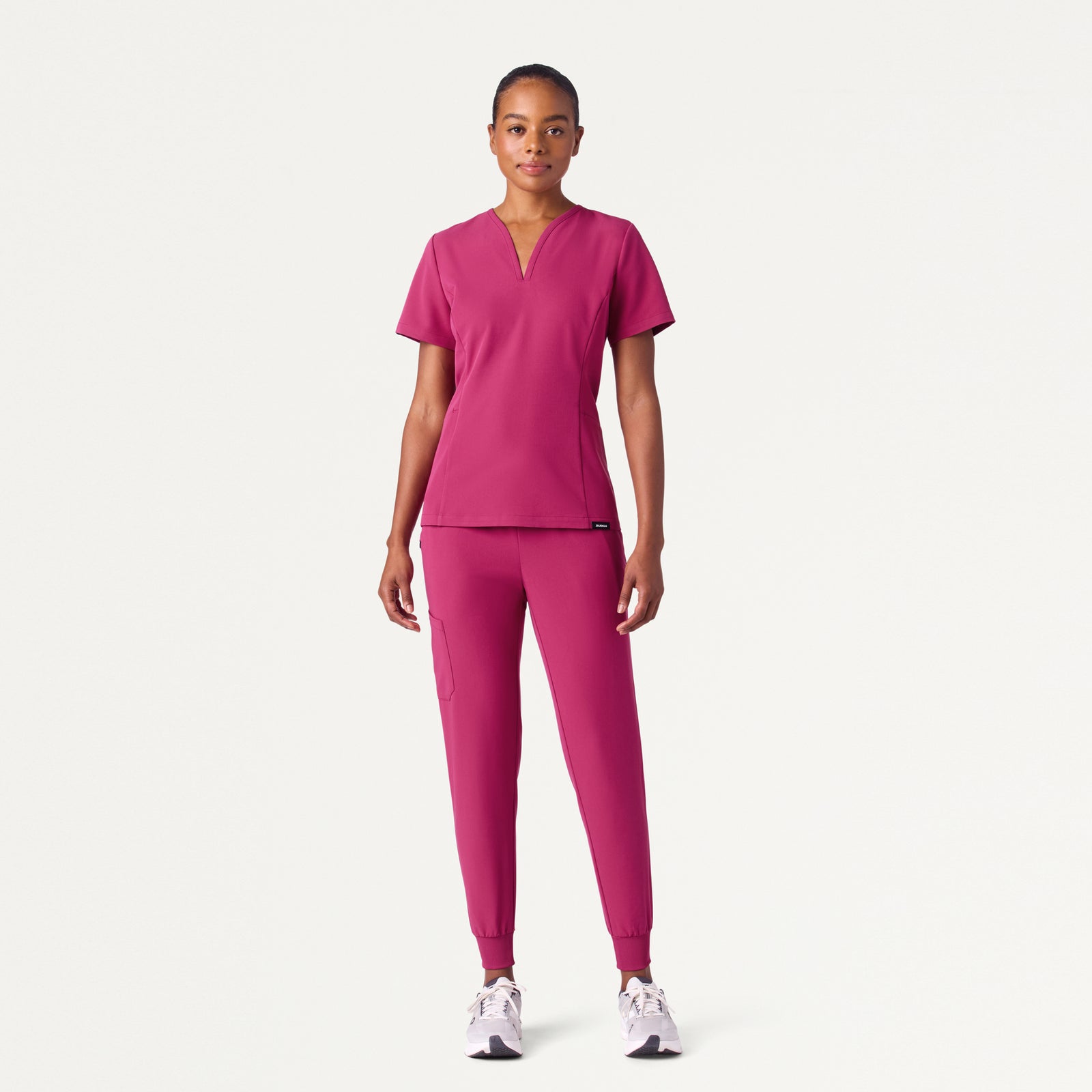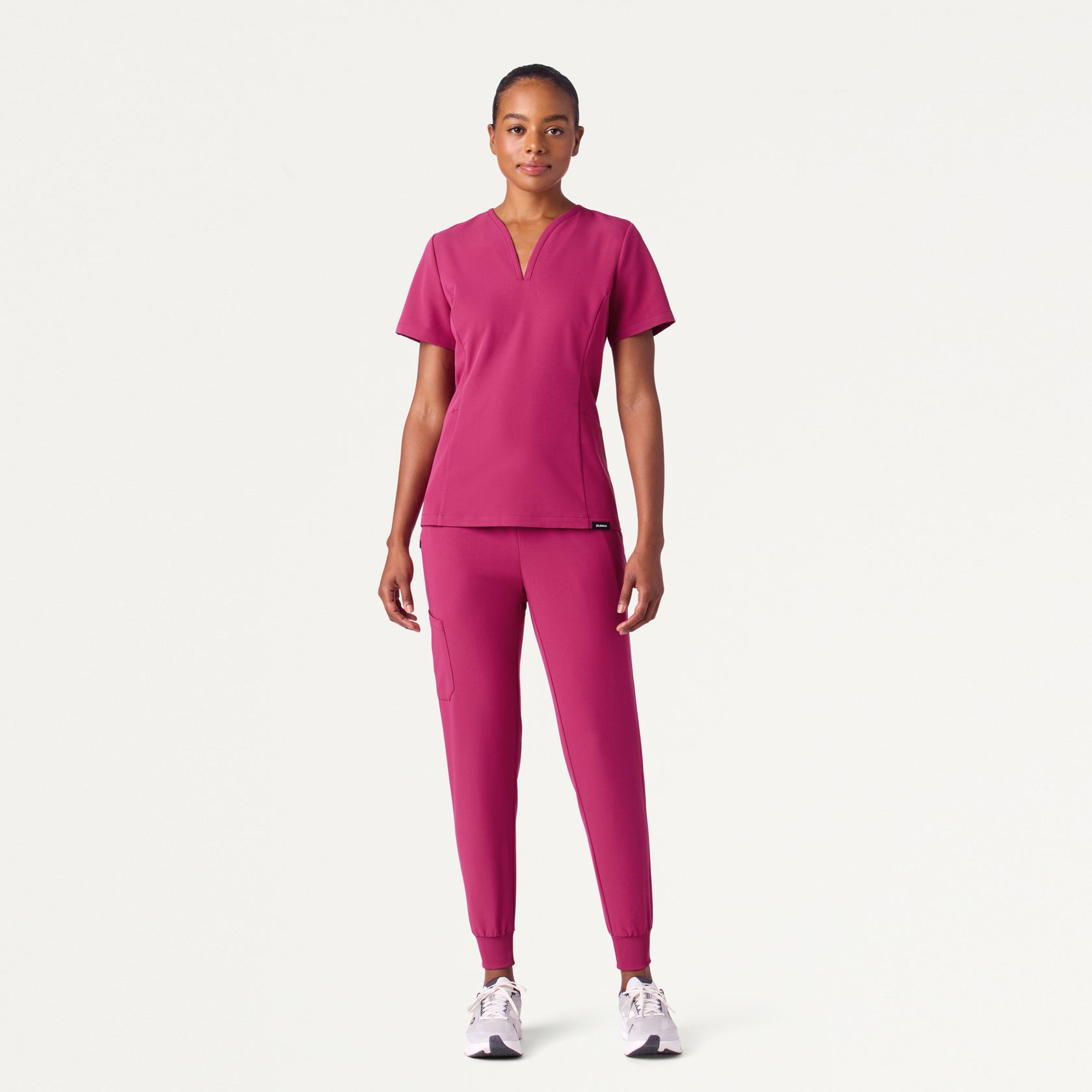 Slimmer-fitting jogger with a soft and comfortable knit waistband and cuffs. This style pairs best with JAANUU UltraLAST™ scrub tops.