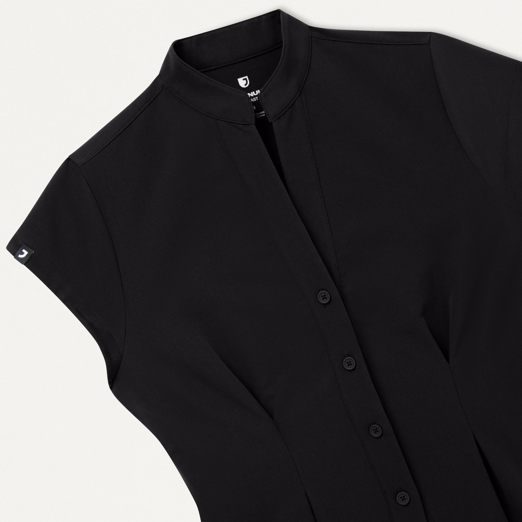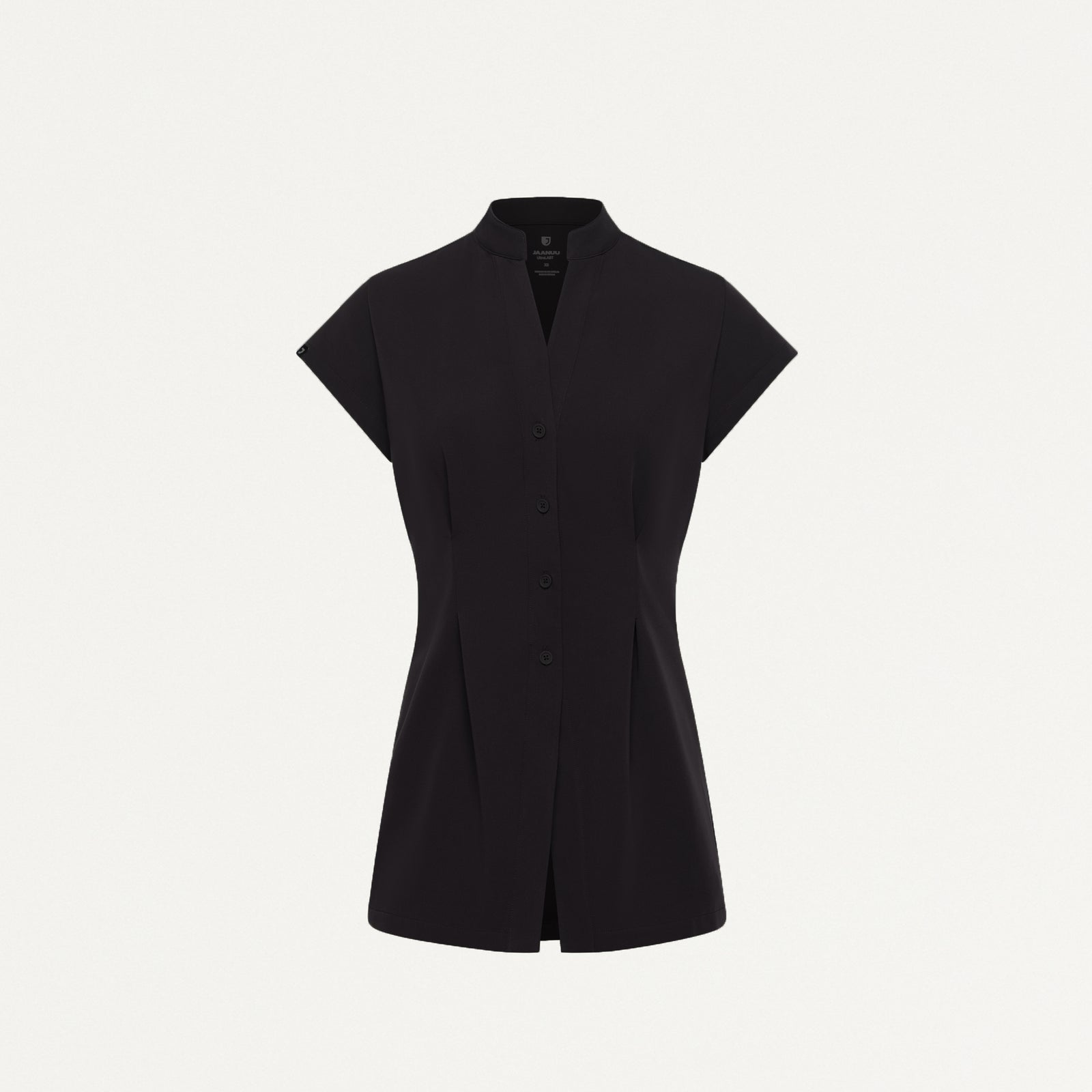 A button-up design gives this scrub top a standout style, crafted with a tunic silhouette that delivers a tailored look.