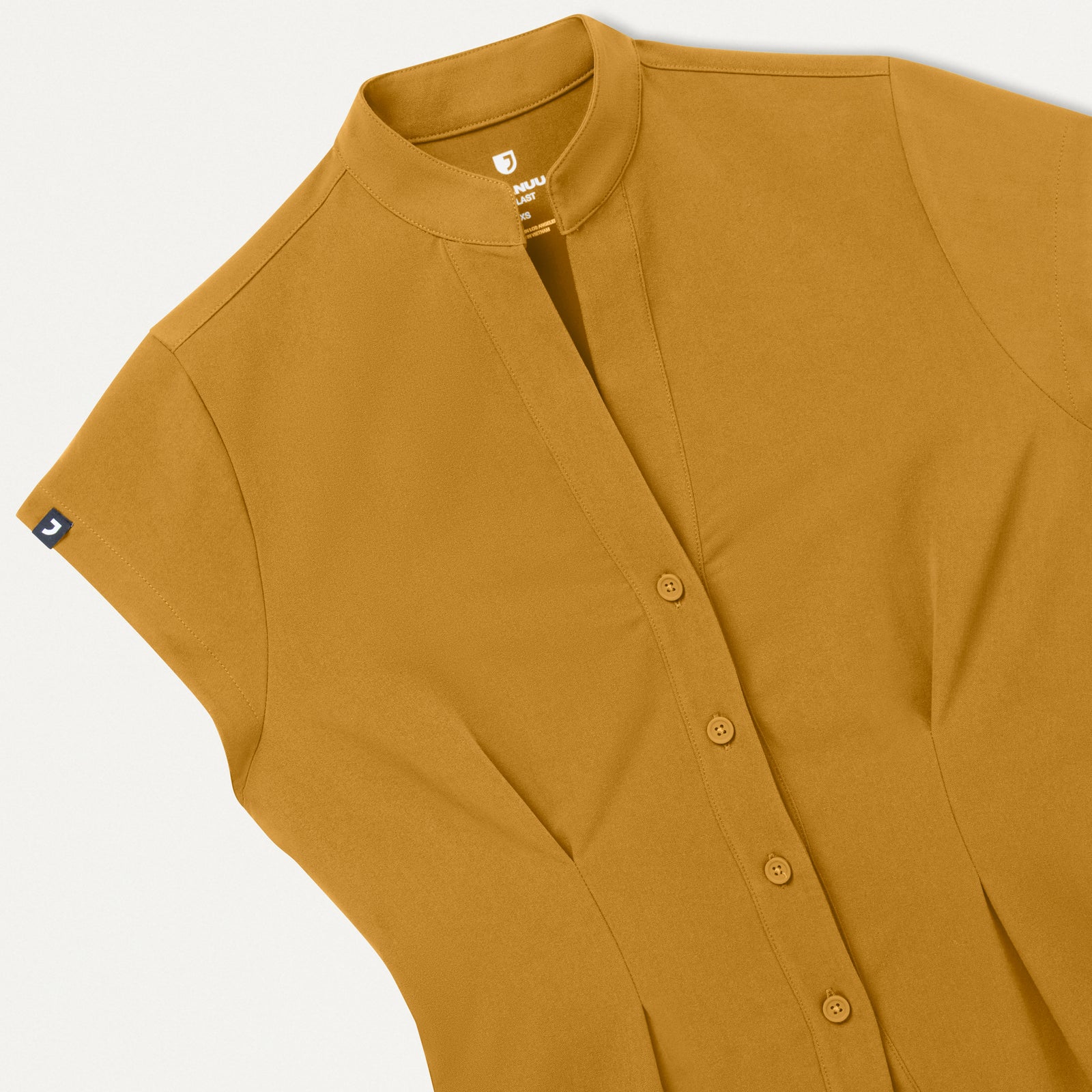 A button-up design gives this scrub top a standout style, crafted with a tunic silhouette that delivers a tailored look.