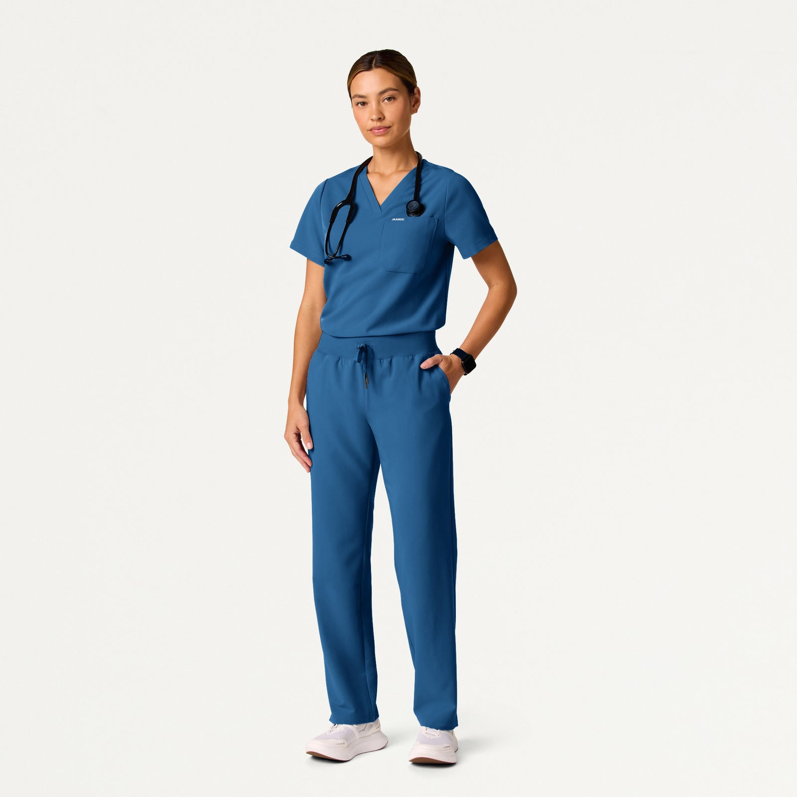 Essential and timeless pant with a soft waistband and straight leg. This style pairs best with JAANUU UltraLAST™ scrub tops.