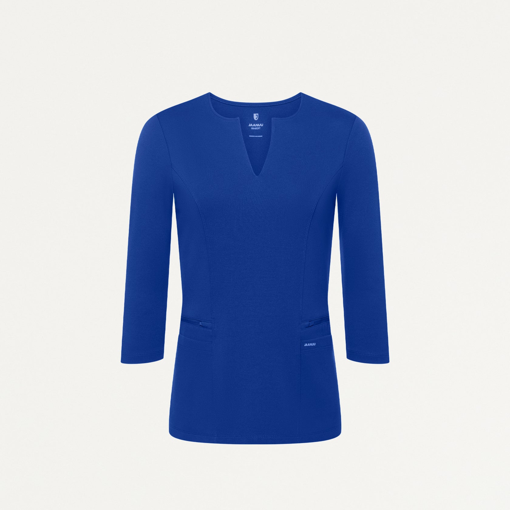 Flatter yourself in this modern take on a beloved JAANUU original, featuring 3/4-length sleeves and a chic slit neckline. This style pairs best with JAANUU UltraSOFT™ scrub pants.